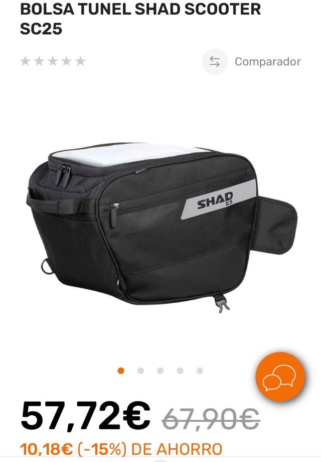 Detalles del productoBolsa de túnel para scooter marca Shad, modelo SC25, nuevo a estrenar con su etiqueta y toda sus accesorios, bolsa impermeable, correas para transporte, adhesivos... Ideal para llevar tus pertenencias de forma segura.