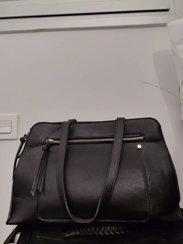 Bolso shopper efecto piel negro
