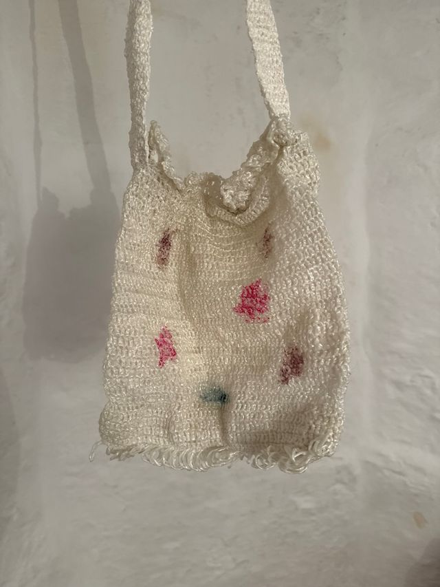 Bolso tejido crochet blanco con detalles