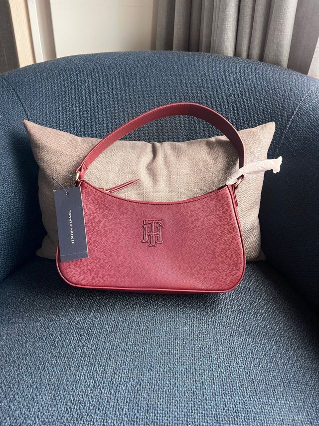 Detalles del productoBolso de mano de la marca Tommy Hilfiger en color granate. Es un modelo nuevo con etiqueta.