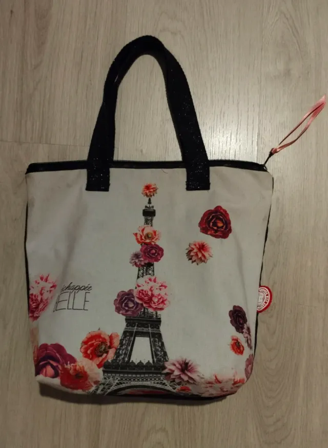 Bolso con estampado de la Torre Eiffel y flores.