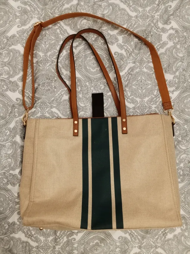 Bolso Tote Beige con Rayas Azules