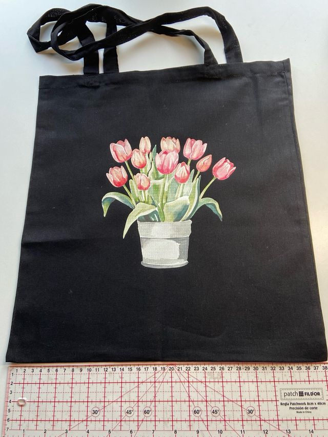 Bolso Tote Negro con Tulípanes Rosas
