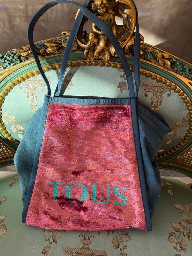 Bolso Tous lentejuelas rosa y azul 37x47 cm
