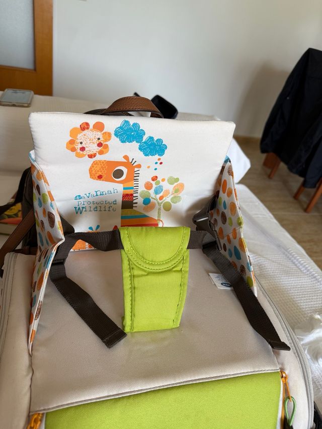 bolso trona de viaje en buen estado. hasta los 36 meses. con compartimentos.
