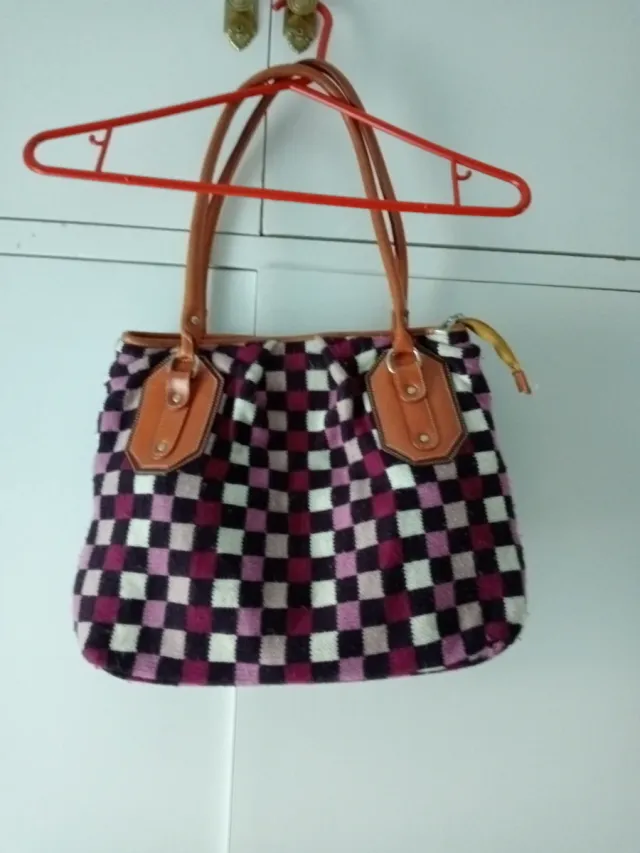 Bolso Ubrique Piel y Lana Cuadros Multicolor