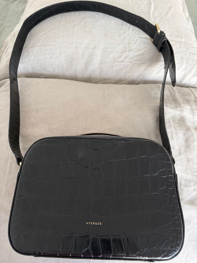 Bolso Uterqüe negro efecto piel cocodrilo
