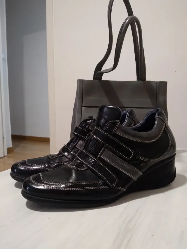 Bolso y Zapatos de Piel Negros/Grises