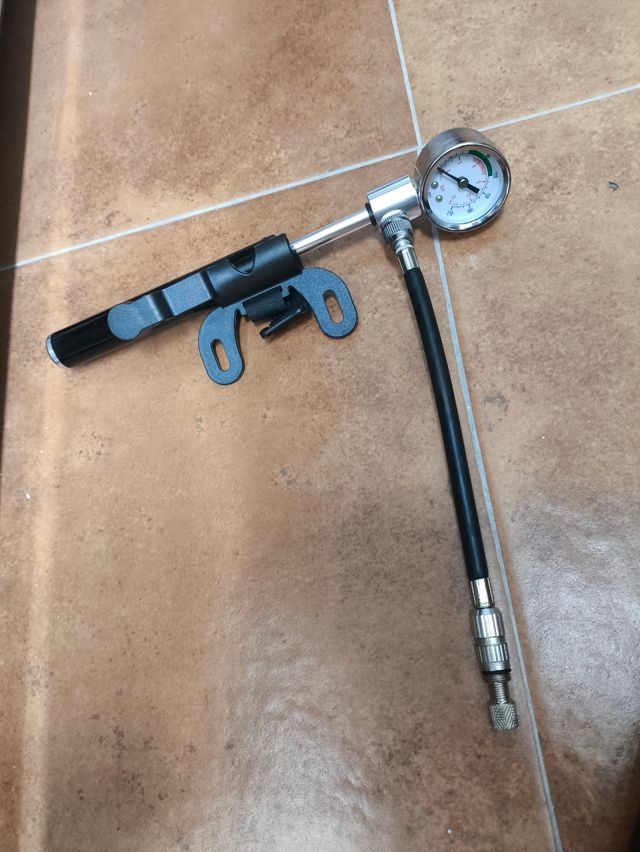 Detalles del productoMini bomba de bicicleta en buen estado. Es compacta y fácil de transportar.