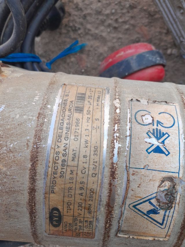 Bomba sumergible de 1,8 cv, 220v monofasica con boya y manguera. Ideal para vaciar estanques, piscinas, pozos. Se entrega en mano.