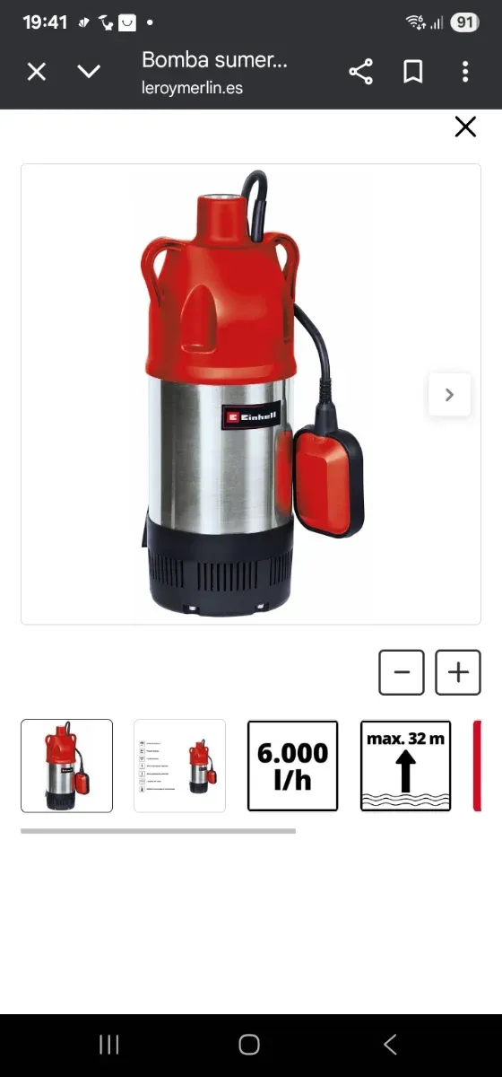 Bomba de agua sumergible de la marca Einhell, ideal para el manejo de aguas.