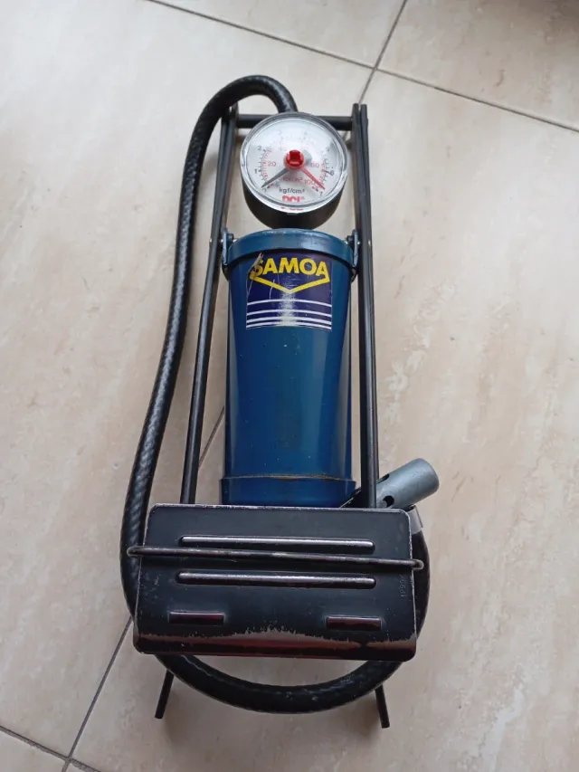 Detalles del productoBomba de inflar a pie de la marca SAMOA, con un diseño robusto y práctico.