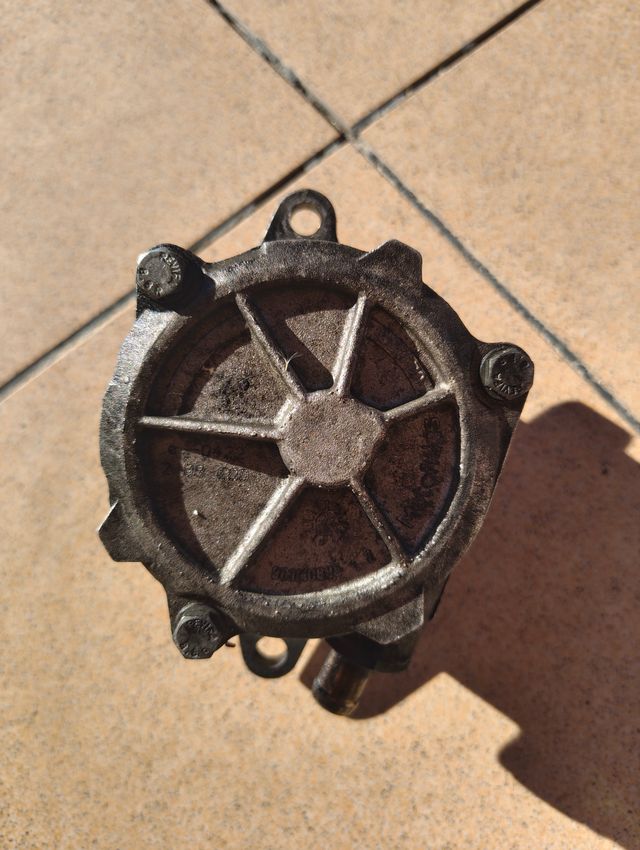 Detalles del productoBomba de vacío para BMW E39. Pieza metálica con un diseño circular y seis radios.