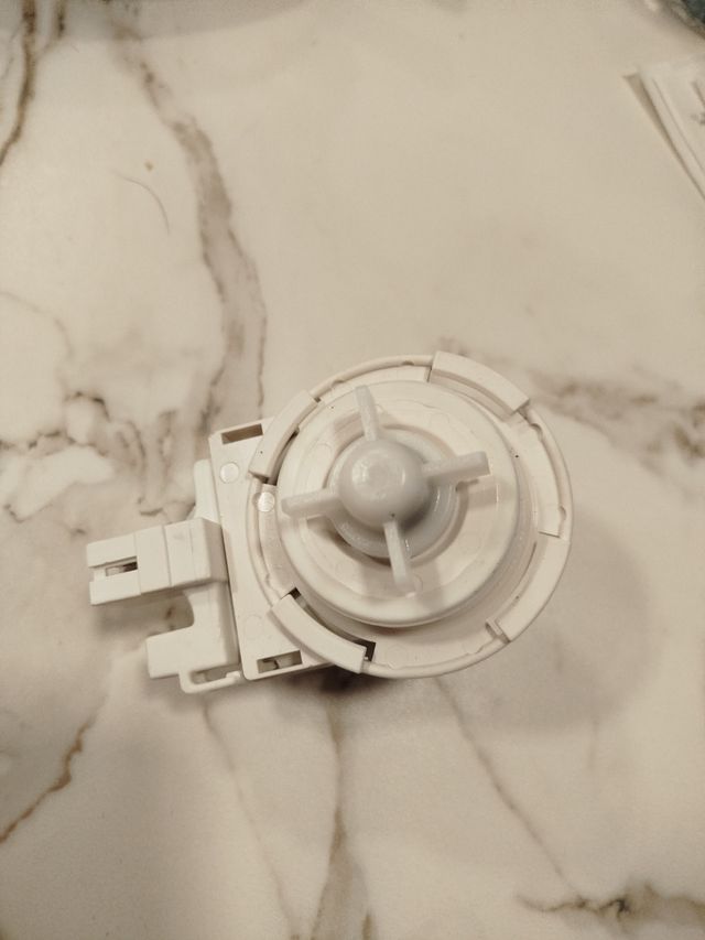 Bomba de desagüe para lavavajillas Miele G 4100 SC. Pieza de repuesto. - Componente blanco de plástico. - Conector de 2 pines.