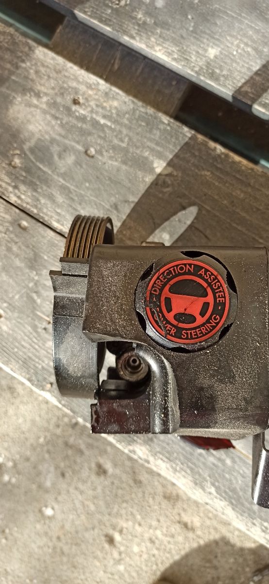 - Etiqueta con logo de volante y texto DIRECTION ASSISTEE - POWER STEERING.