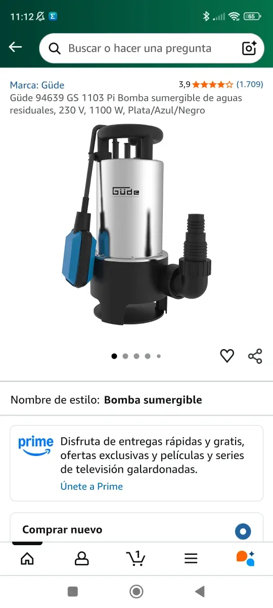 Bomba sumergible de aguas residuales Güde. - Modelo: 94639 GS 1103 Pi - Voltaje: 230 V - Potencia: 1100 W - Color: Plata/Azul/Negro