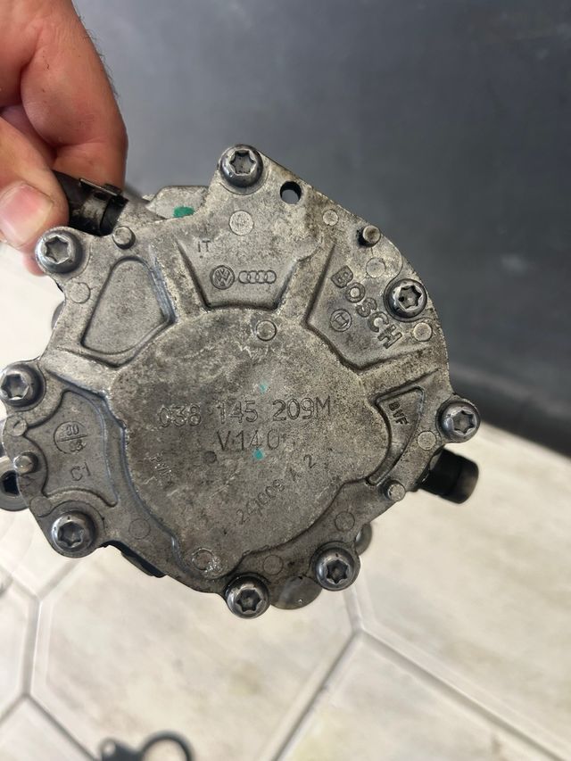 Bomba tandem usada para Audi y VW. Está en buen estado, aunque muestra señales de uso. - Número de parte: 038145209M - Marca: Bosch