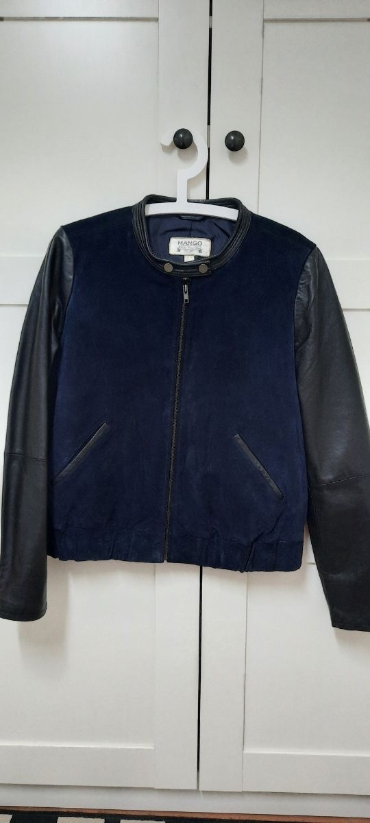 Bomber Mango Piel y Ante Negra/Azul Mujer