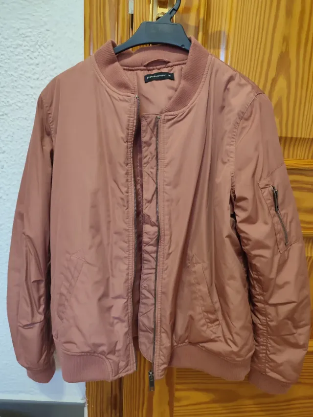 Bomber. Talla M pero sirve también para S. Sin uso. Color rosa apagado más bonito que en la foto. Es gordita abriga bastante. NO LA REBAJO!!