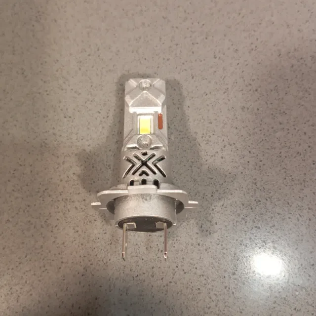 Bombilla LED de repuesto para vehículos. - Diseño plateado con disipador de calor. - Base metálica con dos pines de conexión.