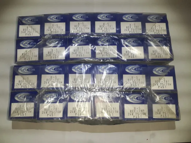 Pack de 24 bombillas H5 de 24V y 75/70W. - Marca EDA. - Modelo REF-781. - Voltaje: 24V. - Potencia: 75/70W. - Código: P45T.