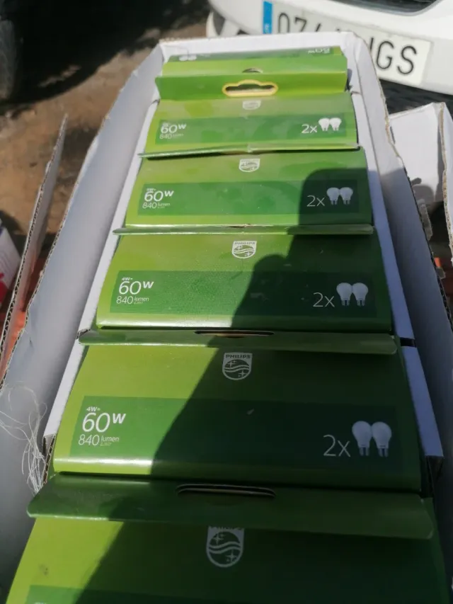 Pack de bombillas LED Philips de bajo consumo. - Potencia: 60W (equivalente a 4W reales). - Luminosidad: 840 lúmenes. - Incluye 2 bombillas por caja.