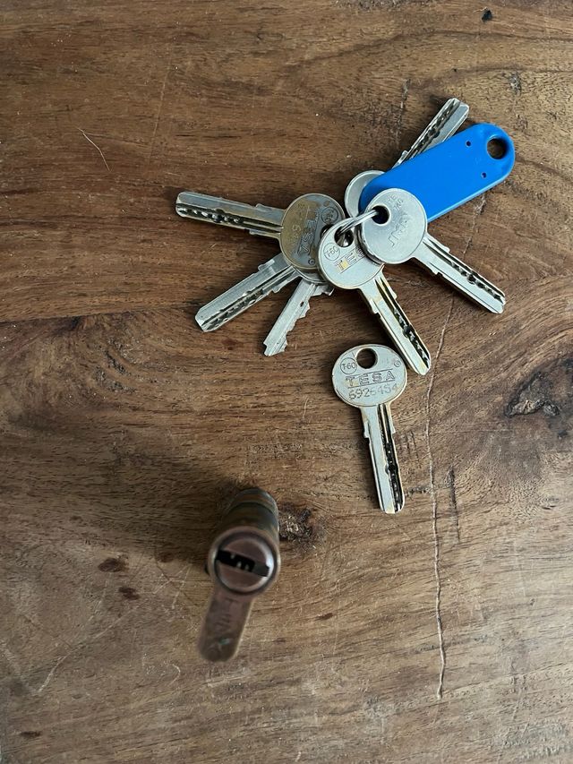 Bombín dorado de la marca Tesa, tiene 3 llaves originales y 4 copias. Medidas 30/30