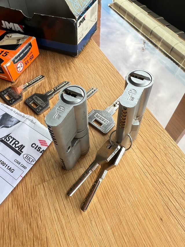 Detalles del productoSe venden dos bombines de cerradura EZCURRA DS-15. Con protección Antibumping.