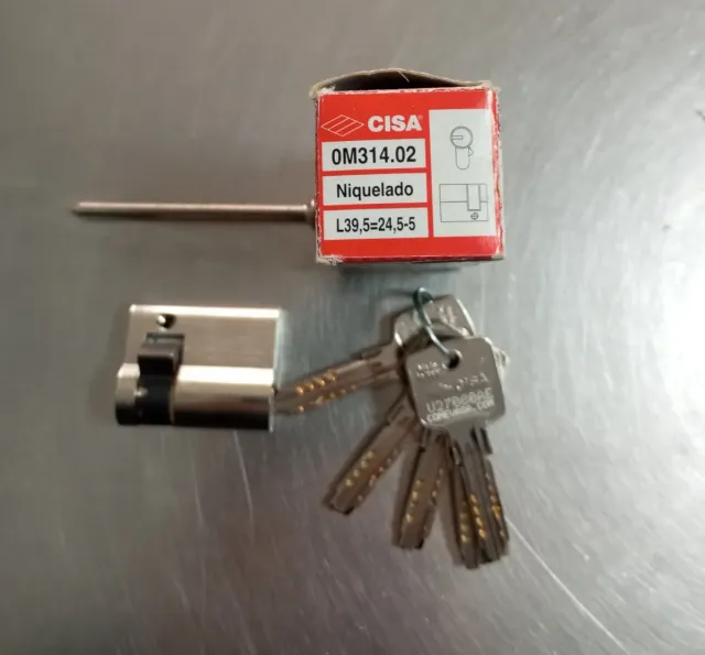 Bombín de seguridad CISA modelo OM314.02 con acabado niquelado. - Medidas: L39,5=24,5-5 - Incluye 5 llaves.