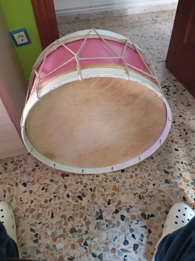 Bombo de percusión con un llamativo color rosa. - Cuerpo principal de color rosa. - Aro blanco. - Cuerdas de sujeción.