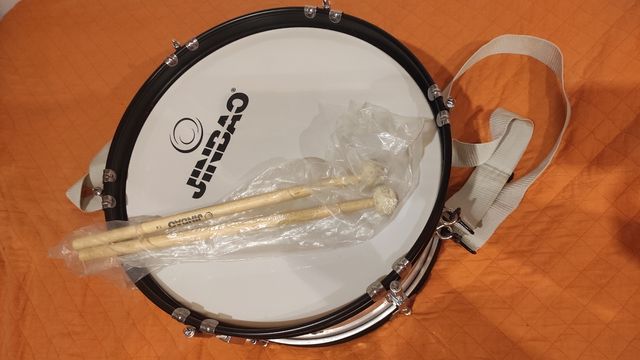Bombo de la marca Jinbao con 40 cm de diámetro. Incluye baquetas. - Diámetro: 40 cm - Alto: 25 cm - Color: Blanco y negro - Incluye correa para colgar