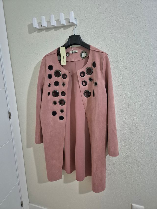Bonito chaquetón rosa palo efecto antelina SIN ES