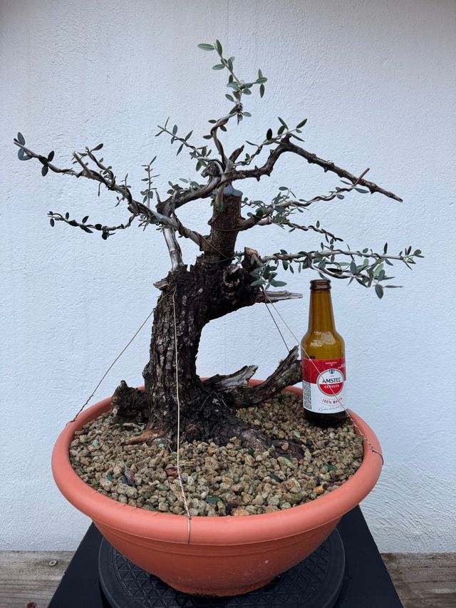 Bonsai acebuche, madera muerta natural, gran base, buena corteza vieja, y primera formación hecha