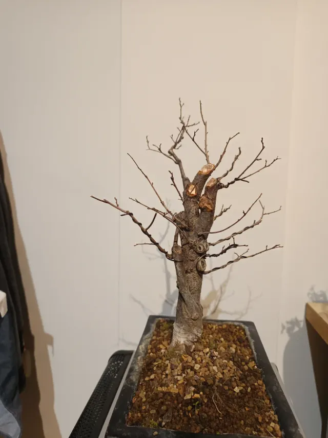 Precioso bonsái de árbol, ideal para coleccionistas o amantes de la jardinería. - Tronco retorcido con carácter. - Ramificación detallada. - Maceta rectangular negra.