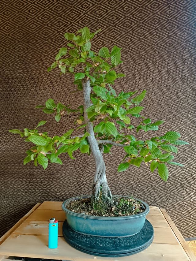 Detalles del productoPrecioso bonsái de carpe con tronco retorcido y follaje verde vibrante. Ideal para coleccionistas o como elemento decorativo.
