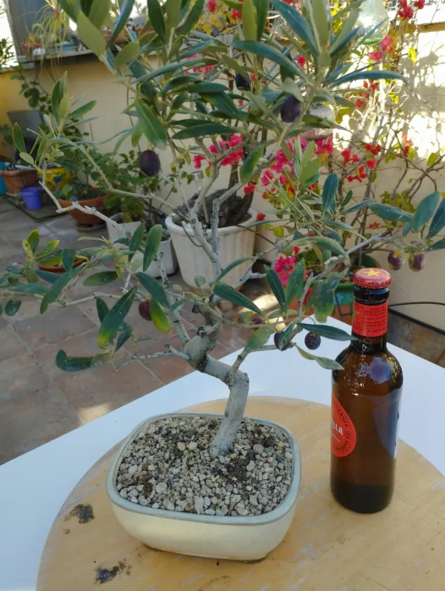 Precioso olivo en formato bonsái, ideal para coleccionistas o amantes de la jardinería.