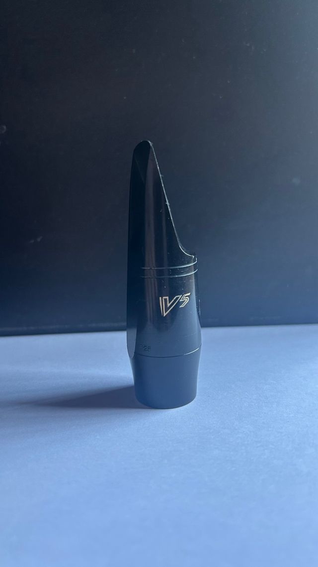 Boquilla para saxofón alto Vandoren V5 A28. Ligero desgaste en las pintura de las letras (que obviamente no afecta en nada al sonido). Ha tenido muy poco uso.