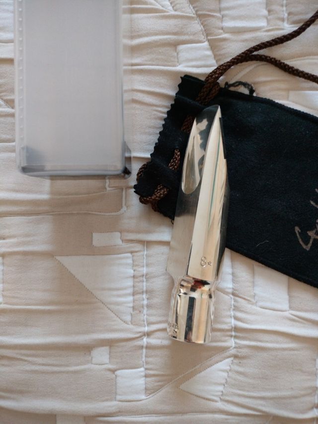 Detalles del productoBoquilla para saxo tenor Gottsu Sepia Tone, modelo Jazz metal, medida 8*, es equivalente más o menos a 7*. Está en perfecto estado. Articulación fácil, buena proyección. Timbre con mucho color, más o menos en la mitad del espectro oscuro -brillante. Se puede probar en Madrid. El precio es algo negociable.