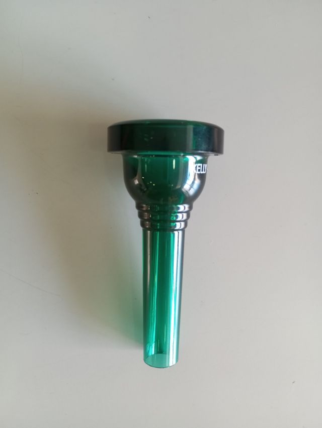 Disponemos de varias unidades. Boquilla para trombón marca Kelly, modelo 5G, en color verde. - Material: Plástico. - Color: Verde translúcido. - Modelo: 5G.