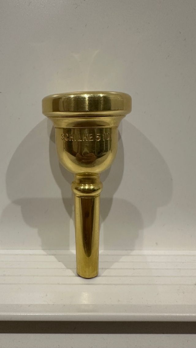 Boquilla para trombon marca Schilke, modelo 51D (OJO! tudel estrecho) - Acabado dorado - Solo probada - Ningún rasguño