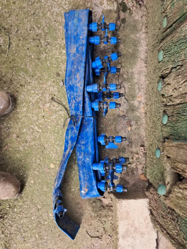 Conjunto de boquillas de riego para manguera azul.