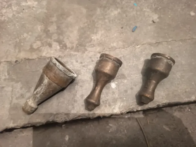 Detalles del productoConjunto de tres boquillas para manguera, fabricadas en metal con un acabado envejecido.