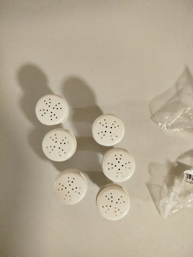Pack de seis boquillas soplantes de color blanco. - Diseño circular con múltiples perforaciones. - Color blanco.