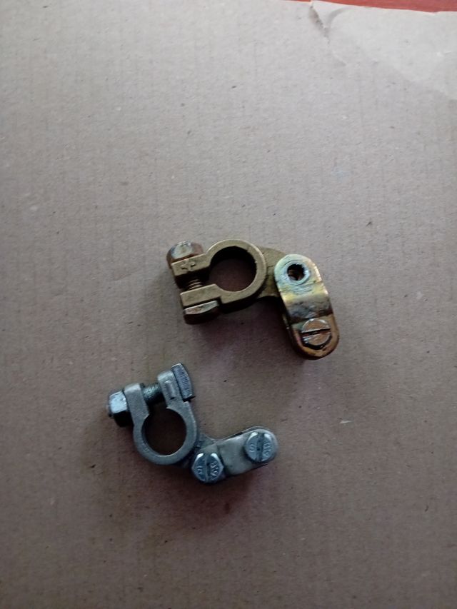 Detalles del productoPar de bornes de batería para coche, resistentes y en buen estado.