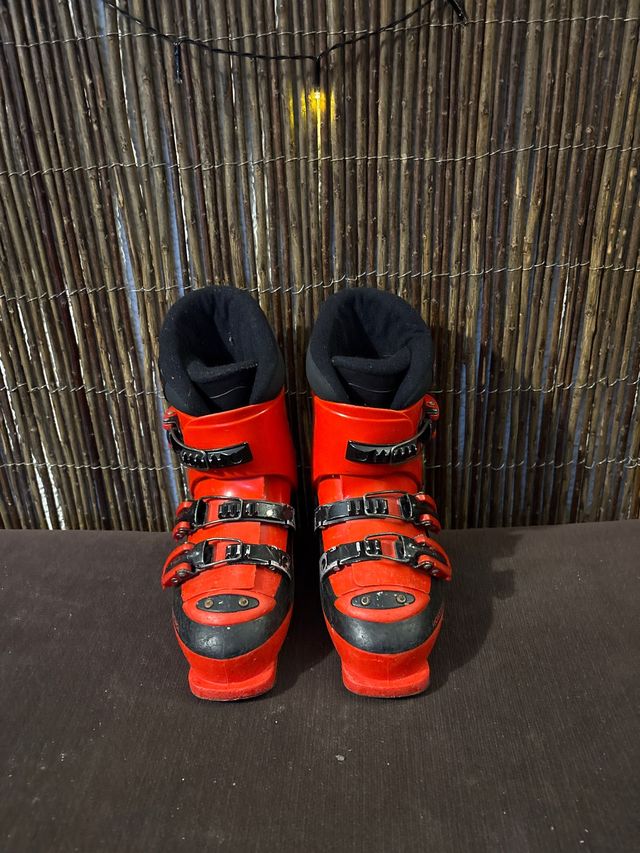 Bota de esquí de la marca Rossignol. - Talla 250mm. - Color rojo y negro. - Cierre con hebillas.