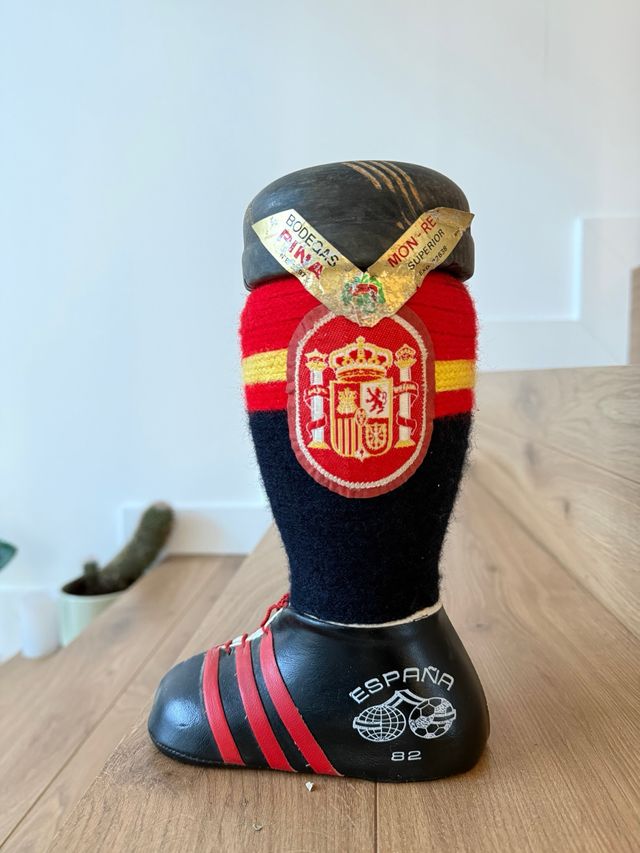 Detalles del productoPieza original de los años 80, botellero promocional del Mundial España 82, con cinta original de Bodegas Monré (Rioja).