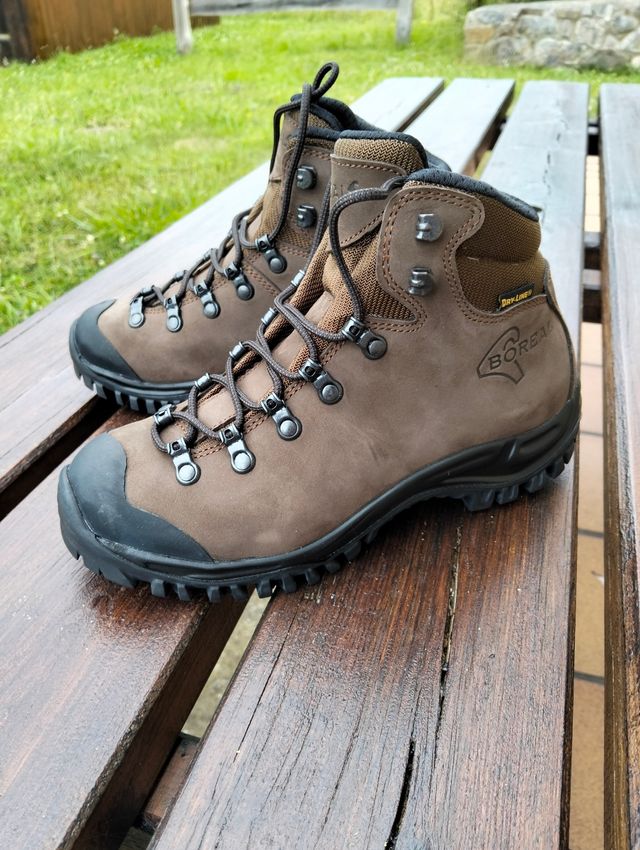 Bota de trekking para montaña. Boreal Strider Forestal. Piel flor de 2,6 mm hidrofugada y reforzada. Sistema Dry-Line. Suela Vibram. Sin estrenar. Talla: 38 y 39