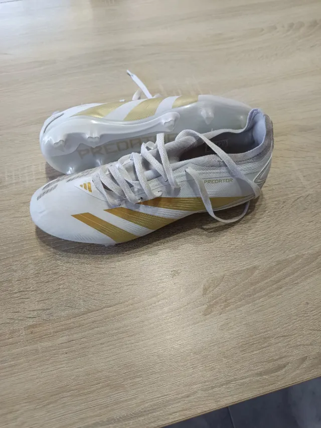 Detalles del productoBotas de fútbol Adidas Predator League MG en color blanco y dorado. Diseñadas para ofrecer un excelente rendimiento en el campo.