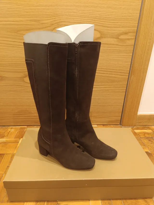 Botas altas de ante marrones. Marca Gloria Ortiz