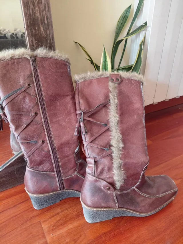 Botas altas de cuero marrón con pelo